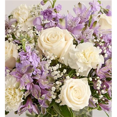Lovely memories are made with thoughtful gifts for the ones we care about. Our charming lavender flower bouquet is loosely gathered with a medley of lavender & white blooms. Hand-designed inside a clear cylinder vase with cascading greenery all around, it’s a wonderful way to express the sentiments you have inside your heart.